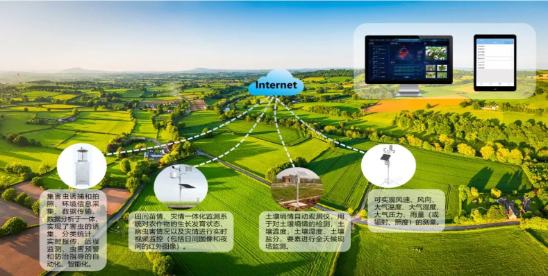 高標(biāo)準(zhǔn)農(nóng)田的大田信息化建設(shè),通過智能蟲情測(cè)報(bào)系統(tǒng)、智能病害監(jiān)測(cè)系統(tǒng)、無線環(huán)境監(jiān)測(cè)站、生物實(shí)時(shí)預(yù)警監(jiān)控系統(tǒng)等相關(guān)設(shè)備實(shí)現(xiàn)對(duì)每個(gè)監(jiān)測(cè)點(diǎn)的病蟲狀況、災(zāi)害情況、空氣溫度、空氣濕度、露點(diǎn)溫度、土壤溫度、光照強(qiáng)度等各種作物生長(zhǎng)過程中重要參數(shù)進(jìn)行實(shí)時(shí)監(jiān)測(cè)、分析處理評(píng)估,實(shí)現(xiàn)田間生產(chǎn)、管理、防控、服務(wù)數(shù)字化。